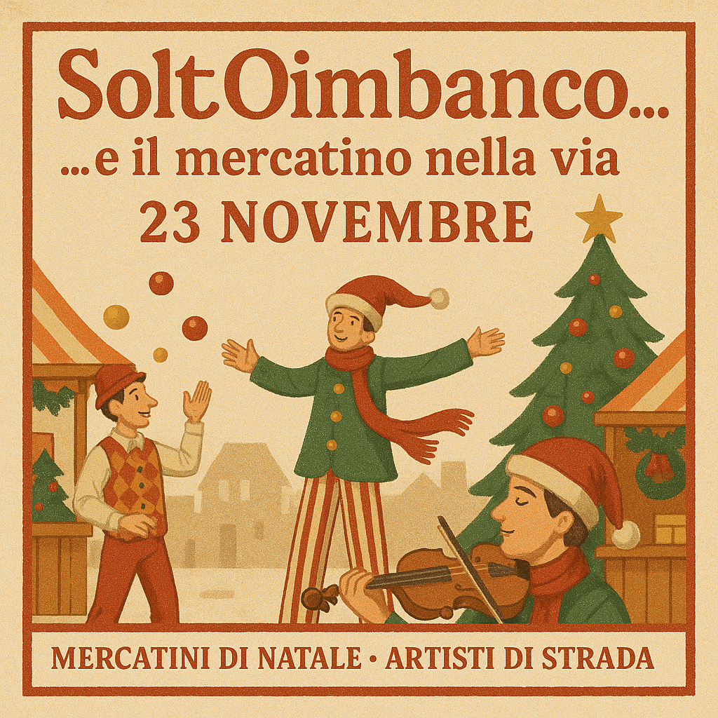 SoltOimbaco… e il Mercatino nella via Domenica 23 novembre La ventitreesima edizione ORARI:DALLE ORE 10.00 MODULO PER GLI ESPOSITORI: Modulo espositori completo – 2025Download